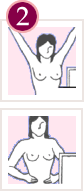 Inspect your breasts with your arms at your sides. Next, raise your arms high overhead.