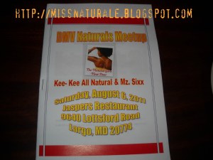 Last Saturday I co hosted and attended my 1st natural hair meetup with my sista Kee-Kee All Natural at Jaspers in Largo, MD. I had been wanting to attend a meetup for a while and when I saw her posting about the meetup she was working on- I contacted her and got on board! I wasn’t sure what to expect, what was suppose to happen, or what we would “talk” about for 3 hours, but I did know that I was extremely excited.!